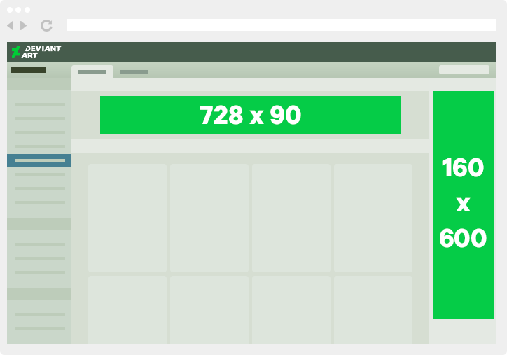 Our IAB standard units leverage demographic, psychographic, and categorical data that is collected from the DeviantArt community to serve targeted media at a maximized reach. All units are served above the fold and as 100% viewable. See Full List of Ad Specs.
